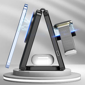- Foldable, Affordable, Friendly Travel Charger for Multiple Devices: Kixuny 3 in 1 wireless charging station for Apple devices folds up to the size of your phone when not in use, you need not to bring multiple chargers nor tangled cords when travelling or on business, and its compact design makes it a international travel must haves charging station. This generic mafsafe charger can be used on desks, nightstands, dining table, hotel, and travel terminals, making charging accessable in daily life